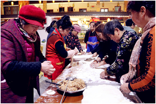 1月26日上午,徐州電視臺《張慧幫你問》春節(jié)特別節(jié)目“走街串巷尋年味”欄目組,走進全國文明單位——徐州市下淀社區(qū)。近500名居民群眾歡聚在下淀大排檔舉行了豐富多彩的文藝演出,推出重頭戲——“包餃子過大年”活動,并向全市人民拜年!