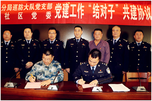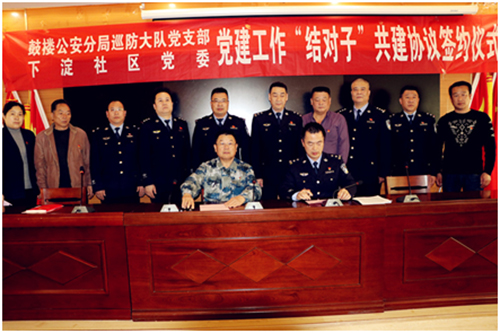 3月29日下午,徐州鼓樓公安分局巡防大隊(duì)黨支部50多名黨員來下淀社區(qū)開展黨建活動。干警們先后參觀了社區(qū)記憶館、書畫活動室、文藝活動室和圖書室等。參觀活動結(jié)束后,鼓樓公安巡防大隊(duì)支隊(duì)長、黨支部書記朱庚中與下淀社區(qū)黨委書記付化友共同簽訂了黨建工作“結(jié)對子”共建和“廉潔伙伴協(xié)議書”。這已是下淀社區(qū)黨委繼徐州北站黨委、地鐵三號線黨支部等五家區(qū)域黨組織結(jié)成黨建共建單位后,首次與公安部門結(jié)對。