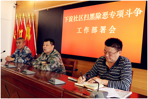 為不斷增強人民幸福感、安全感,4月16日下午,徐州下淀社區(qū)召開掃黑除惡專項斗爭工作部署會,社區(qū)全體在職黨員、志愿者參加。社區(qū)主任李普華同志就掃黑除惡專項斗爭工作做了全面部署,黨委書記付化友同志講話。