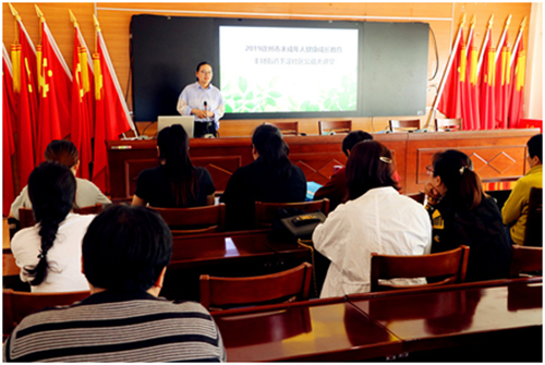 5月16日上午,由徐州市侯集高級中學(xué)專職心理教師、國家二級心理咨詢師、徐州市中小學(xué)心理健康兼職教研員、徐州市未成年人成長指導(dǎo)中心心理咨詢師,徐州市心理健康教育優(yōu)質(zhì)課比賽一等獎獲得者朱欣欣主講的《心理健康:我們與孩子共同的課題》在下淀社區(qū)四樓會議室舉行。豐財街道辦事處各社區(qū)分管未成年人教育的負(fù)責(zé)人30余人參加會議。