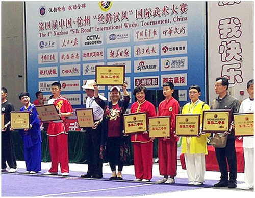 5月26日下午,為期三天的第四屆中國(guó)·徐州絲路漢風(fēng)國(guó)際武術(shù)大賽在江蘇徐州奧體中心落下帷幕,來(lái)自48個(gè)國(guó)家和地區(qū)的130余名境外運(yùn)動(dòng)員,以及全國(guó)27個(gè)省、市、自治區(qū)326個(gè)代表隊(duì)近4000余名運(yùn)動(dòng)員參賽。徐州下淀武術(shù)隊(duì)在此次比賽中勇奪木蘭劍集體二等獎(jiǎng);馬秀華分獲太極器械、24式太極拳二等獎(jiǎng);孟晶分獲太極劍二等獎(jiǎng)、24式太極拳三等獎(jiǎng);張厚來(lái)分獲楊式太極拳二等獎(jiǎng)、24式太極拳三等獎(jiǎng);王玉慶獲楊式太極拳二等獎(jiǎng);倪守榮分獲太極器械、24式太極拳三等獎(jiǎng);孟慶勇、房學(xué)美分獲24式太極拳三等獎(jiǎng)。從整體實(shí)力來(lái)看,下淀武術(shù)隊(duì)派出的16名隊(duì)員在國(guó)際武術(shù)大賽中均獲得不俗戰(zhàn)績(jī)。