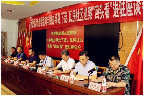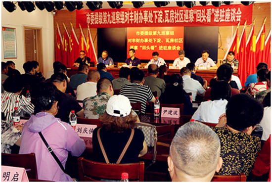8月20日下午,市委提級(jí)第九巡察組對(duì)豐財(cái)辦事處下淀、瓦房社區(qū)巡察“回頭看”進(jìn)駐座談會(huì)在下淀社區(qū)召開。提級(jí)巡察組全體成員、區(qū)委常委、區(qū)紀(jì)委書記、區(qū)監(jiān)委主任、區(qū)委巡察工作領(lǐng)導(dǎo)小組常務(wù)副組長,豐財(cái)街道黨工委書記、副書記,紀(jì)工委書記、組織委員和包掛社區(qū)領(lǐng)導(dǎo)、分管民政(扶貧)領(lǐng)導(dǎo),監(jiān)察員辦公室負(fù)責(zé)同志分別在主席臺(tái)和前排就坐。