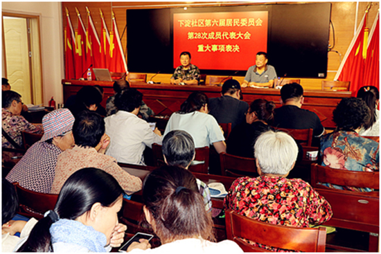 9月20日下午, 下淀社區(qū)舉行第六屆居民委員會(huì)第二十八次成員代表大會(huì),出席大會(huì)的59名村民代表就 “下淀社區(qū)黨委舉辦慶祝新中國(guó)成立70周年‘我愛(ài)祖國(guó)’紅歌比賽活動(dòng)方案”和“‘九·九’重陽(yáng)節(jié)活動(dòng)方案” 等重大事項(xiàng)進(jìn)行表決。