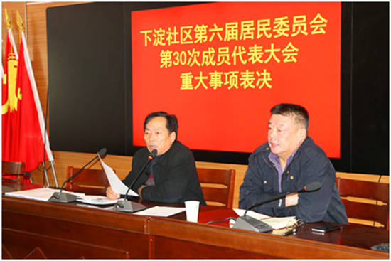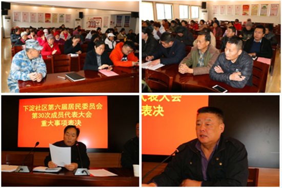 11月29日下午,下淀社區(qū)第六屆居民委員會(huì)第三十次成員代表大會(huì)重大事項(xiàng)表決在四樓會(huì)議室舉行,54名村民代表參加表決。