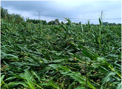 8月13日晚,受臺(tái)風(fēng)“摩羯”影響,豐縣宋樓鎮(zhèn)遭受強(qiáng)雷雨暴風(fēng)襲擊,短時(shí)強(qiáng)降雨量達(dá)到109.7毫米,造成大棚設(shè)施損壞,玉米大面積倒伏,蘋果、梨子、桃都存在不同程度的樹枝折斷、落果、倒伏等受災(zāi)現(xiàn)象,部分田間地塊積水嚴(yán)重。