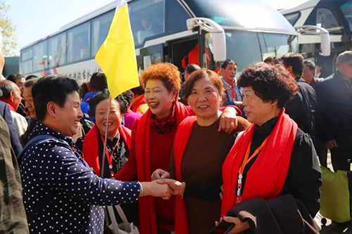 與當年下鄉(xiāng)奮斗的伙伴招手致意