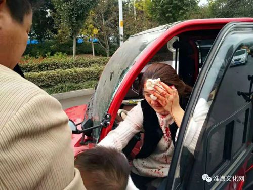 現場電動四輪駕駛員為一年輕婦女,左手懷抱一孩童,右手拿一卷衛(wèi)生紙堵住傷口,傷口血流不止,懷中的孩子在不停的啼哭,四輪電車前擋玻璃破碎,現場一片混亂,車輛堵塞嚴重。此時,有一位中年男性開車路過這里,不假思索,救人要緊,第一時間把受傷者送到中醫(yī)院……