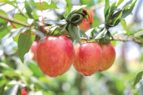 走進(jìn)大沙河油桃基地,記者看到這里每一顆油桃都散發(fā)著誘人色澤,光滑如油、紅亮迷人,個(gè)個(gè)形正,顏美光看著就令人口水直流。