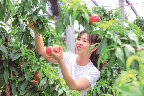 “我們的油桃比水蜜桃更可口,比芒果更香甜,陽(yáng)光全數(shù)被包裹在了桃肉里!”二壩村黨支部書(shū)記唐世營(yíng)介紹說(shuō),近年來(lái),二壩村在大沙河鎮(zhèn)黨委政府正確領(lǐng)導(dǎo)下,走上鄉(xiāng)村振興之路,創(chuàng)新“種植+旅游”模式,通過(guò)一、三產(chǎn)業(yè)的深度融合,打造濕地休閑旅游新業(yè)態(tài),開(kāi)發(fā)休閑農(nóng)業(yè)精品旅游線(xiàn)路,以生態(tài)游、采摘游、休閑游、體驗(yàn)游為出發(fā)點(diǎn),培育農(nóng)業(yè)增收、農(nóng)村發(fā)展、農(nóng)民致富的新路子,目前油桃自摘價(jià)格在8元左右,每個(gè)周未從市里來(lái)此采摘的游客絡(luò)繹不絕。
