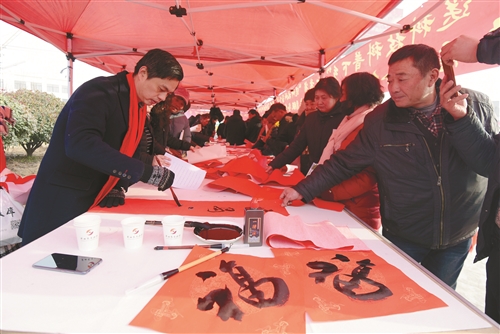 為村民送春聯(lián)。徐州日報全媒體記者 孫井賢 攝