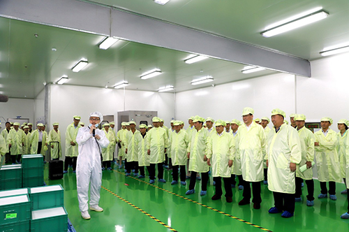 在鳳凰灣電子信息產(chǎn)業(yè)園,觀摩團(tuán)隊(duì)觀看了聯(lián)立半導(dǎo)體的宣傳視頻,并重點(diǎn)參觀了聯(lián)立半導(dǎo)體的生產(chǎn)廠房,了解了產(chǎn)品生產(chǎn)的工藝流程。