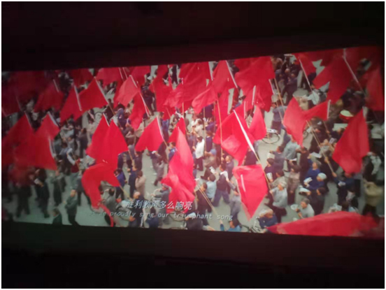 “我和我的祖國(guó),一刻也不能分割,無(wú)論我走到哪里都流出一首贊歌……”隨著片尾曲響起,全體黨員干部熱情澎湃地隨著歌唱《我和我的祖國(guó)》。