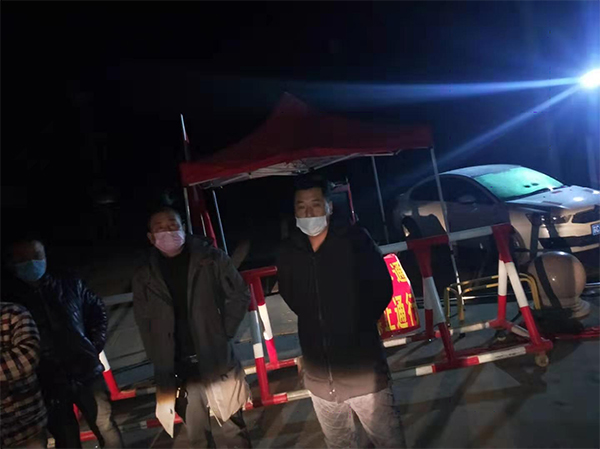每個村口都有他排兵布陣的身影。大年初一一早,本來應(yīng)該是拜年、放炮、吃餃子的時候,他卻匆匆給父母磕了頭(拜年習(xí)俗)就走向了村頭,調(diào)度村兩委、黨員、優(yōu)秀群眾在村西頭的麥地邊開了“封村”動員會。“要求鹿樓村所有自然村在初一中午前全部封閉到位,每個村只留一個應(yīng)急通道派人把守,其余通道全部予以封閉,一個村干部負(fù)責(zé)一個自然村,村干部負(fù)責(zé)動員本村黨員24小時執(zhí)勤,禁止車輛、人員出入,發(fā)現(xiàn)湖北籍貫車輛、人員立即報告。請立即行動,散會。”這是他站在土堆上開的的最快的、最短的一次會,也是做村支書以來下的最嚴(yán)肅的一道命令。初一上午10時,微信群傳來全村8個自然村全部“封閉”到位的消息。