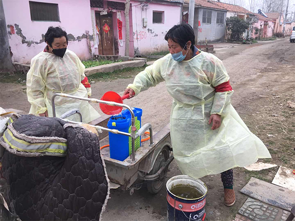 沛縣漢源街道小街子支書朱雷一邊噴灑消毒劑一邊說:“前期嚴(yán)防死守,積極宣傳,現(xiàn)在小區(qū)居民自覺配合防控工作,不外出、不聚集。各項工作有條不紊,讓工作人員信心倍增,咬緊牙關(guān)加把勁,臟活累活帶頭干,把工作抓實抓細(xì),鞏固好前期成果,爭取最后勝利。”