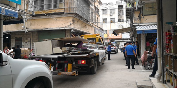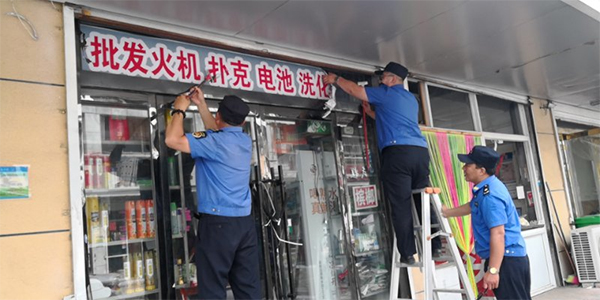 在集中整治過程中,隊員們對轄區(qū)內(nèi)非法廣告招牌、破舊門頭、占道設(shè)攤、店外經(jīng)營、亂堆亂放、違規(guī)廣告、機動車、非機動車亂停亂放等不文明行為進行了集中整治,對個別市民亂張貼、亂吊掛、亂晾曬的行為進行宣傳教育并責令改正。并對占道經(jīng)營的商戶進行耐心教育、勸導,經(jīng)勸導拒不整改的依法暫扣違規(guī)經(jīng)營物品。