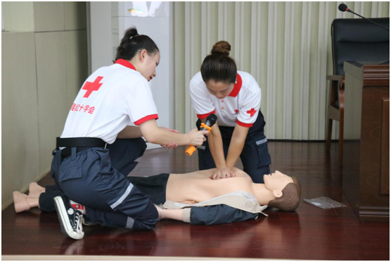 在講解中,紅十字會工作人員利用醫(yī)用模特現(xiàn)場演示了心臟復蘇救助的全過程,對胸外心臟按壓法進行了詳細的講解與示范。期間,沛縣城市管理局兩名執(zhí)法人員同時上臺切身體驗,更加具體地了解應急救援的基本技巧和注意事項。通過理論與實際操練相結(jié)合,使大家了解了急救的基本要領(lǐng),令人記憶深刻。
