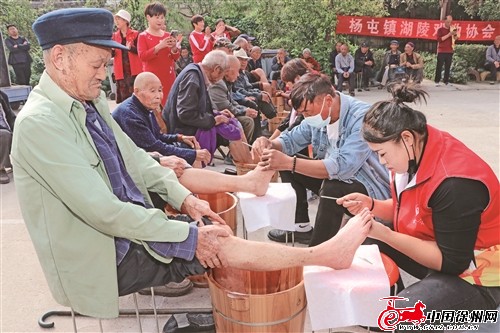 志愿者在為孤寡老人修腳。