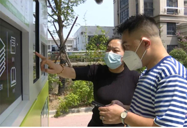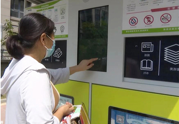 為更好地推廣垃圾分類工作,增強百姓環(huán)保意識,促進小區(qū)環(huán)境改善,2021年沛縣漢源街道在那莊社區(qū)投放了首批“狒狒回收”智能兌現(xiàn)回收機。“狒狒回收”智能體系包含智能投遞和“互聯(lián)網(wǎng)+”上門回收兩大系統(tǒng)。“狒狒回收”智能兌現(xiàn)回收機設(shè)有紙類、金屬類、塑料類、織物類等多個投放口,居民按規(guī)定分類投放垃圾時,只要拿出手機,打開微信“狒狒回收”小程序,對準回收機大屏幕上的二維碼進行掃描,屏幕上隨即進入垃圾分類的界面,回收機上相應的箱門“咔”一聲自動彈開,把可回收物放進去,關(guān)上門自動稱重,然后環(huán)保金到賬,可以直接提現(xiàn)到微信錢包。
