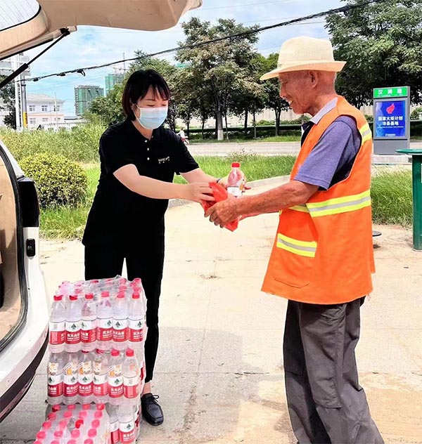 開元物業(yè)公司的領導還給環(huán)衛(wèi)工人送去飲用水、毛巾、香皂等慰問品,使環(huán)衛(wèi)工人感受到夏日的清涼。