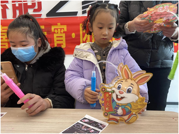 燈籠是我國年俗文化的重要組成部分。在漢興街道新時代文明實踐所內(nèi),社區(qū)志愿者們講述了元宵節(jié)的由來和傳統(tǒng)習(xí)俗,隨后為在場的孩子發(fā)放制作燈籠的材料,詳細地講解燈籠的制作過程。小朋友們認(rèn)真地學(xué)習(xí),近一個小時的手工實踐中,活動室里充滿了歡聲笑語,每位小朋友都充分發(fā)揮想象力,在自己的燈籠上貼上剪好的兔子、糖葫蘆等圖案,還時不時地將自己的作品和同伴及父母進行分享。