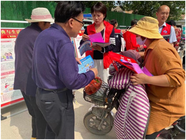 普法志愿者發(fā)放傳單