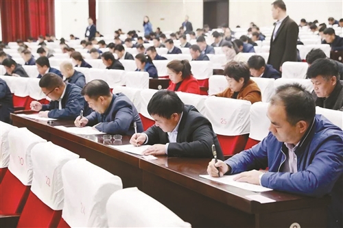 徐州日報訊(全媒體記者 顏子舒 通訊員 鞏秀 攝影報道)“本場考試時間從15:00至16:00,下面開始分發(fā)考卷……”為檢閱廣大黨員干部理論學習成果,3月30日下午,邳州市委黨校迎來一批“特殊考生”,他們將參加習近平新時代中國特色社會主義思想、黨建基礎知識考試。 本次考試閉卷答題、全程錄像,共分3個考場,45名考務人員全程監(jiān)考?紙黾o律嚴格,考生不允許攜帶手機、參考資料等入座。記者在現(xiàn)場看到,各個考場考生沒有出現(xiàn)缺席、遲到、不遵守考場紀律等行為。 廣大黨員干部將本次考試作為一次理論學習成果的檢驗,表示將繼續(xù)深化理論學習,用理論知識武裝頭腦、指導實踐。燕子埠鎮(zhèn)鎮(zhèn)長張道周表示:“這次考試進一步激發(fā)了我們學習的自覺性,增強了我們在實踐中貫徹落實習近平新時代中國特色社會主義思想和黨的十九大精神的政治自覺,用理論知識武裝頭腦,把工作做得更好。”岔河鎮(zhèn)宣傳委員張曙光表示,下一步將繼續(xù)通過“學習強國”平臺和黨報黨刊等渠道,進一步深化理論知識學習,將理論知識運用到實踐中去,為推進鄉(xiāng)村振興,促進經(jīng)濟社會高質(zhì)量發(fā)展貢獻力量。 |