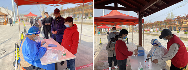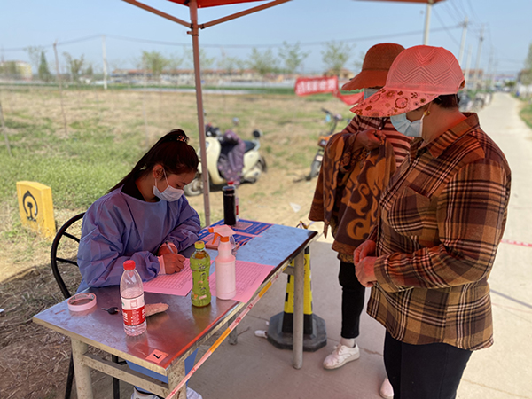 黨有號召、團有行動。在此次抗疫行動中,毛莊村廣大青年志愿者積極踐行“奉獻、友愛、互助、進步”的志愿服務(wù)精神,在防控一線肩負(fù)起信息登記、“兩碼”檢查、采樣輔助、政策宣傳等多種任務(wù)。他們中有的是青年團員、有的是大學(xué)生、有的是普通村民,他們用青春熱情溫暖著身邊每一位“戰(zhàn)友”,也溫暖著每一位村民。在毛莊農(nóng)貿(mào)市場采樣點,剛滿17歲的青年志愿者王宏燦正在登記信息,對于此項工作她已十分熟練,從早上6點開始一直持續(xù)到中午12點。“雖然我還是學(xué)生,能力有限,但我也想為村里的疫情防控做些貢獻,盡一份力量。”王宏燦笑著說道。像王宏燦這樣的青年志愿者還有很多,金慧雅、史晨、王雪怡 、褚楚等等,他們用青春書寫戰(zhàn)“疫”芳華,綻放出無怨無悔的青春光芒。